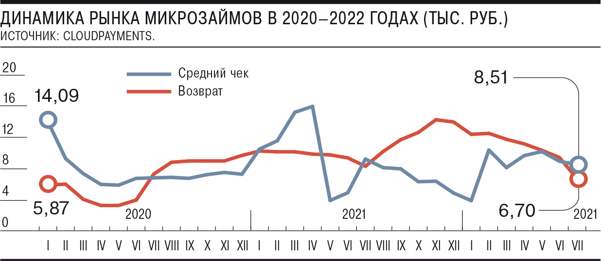 Участники микрофинансового рынка наблюдают значительное снижение суммы возврата займов В июле она достигла 67 тыс руб минимального значения с весны 2020 года С одной стороны снижаются и размеры займов но влияет и сезон отпусков когда заемщики откладывают погашение долга Пока уровень просрочки в сегменте находится на приемлемом уровне Но...